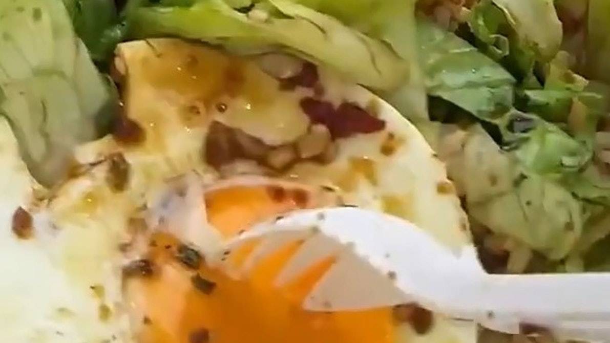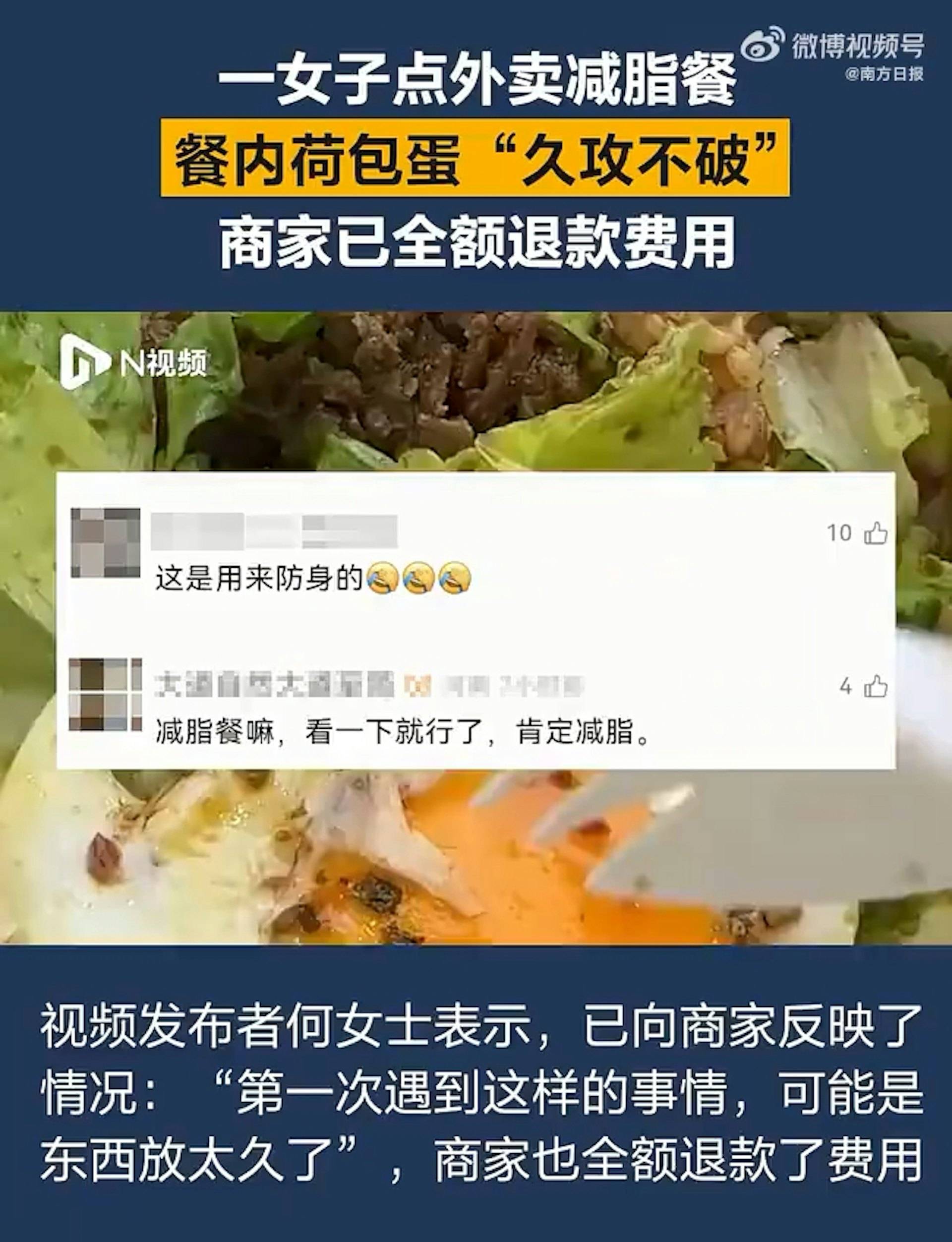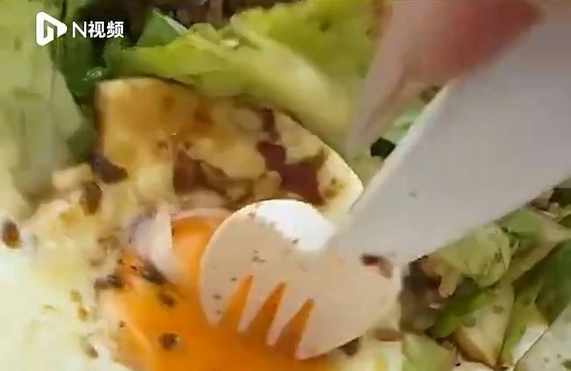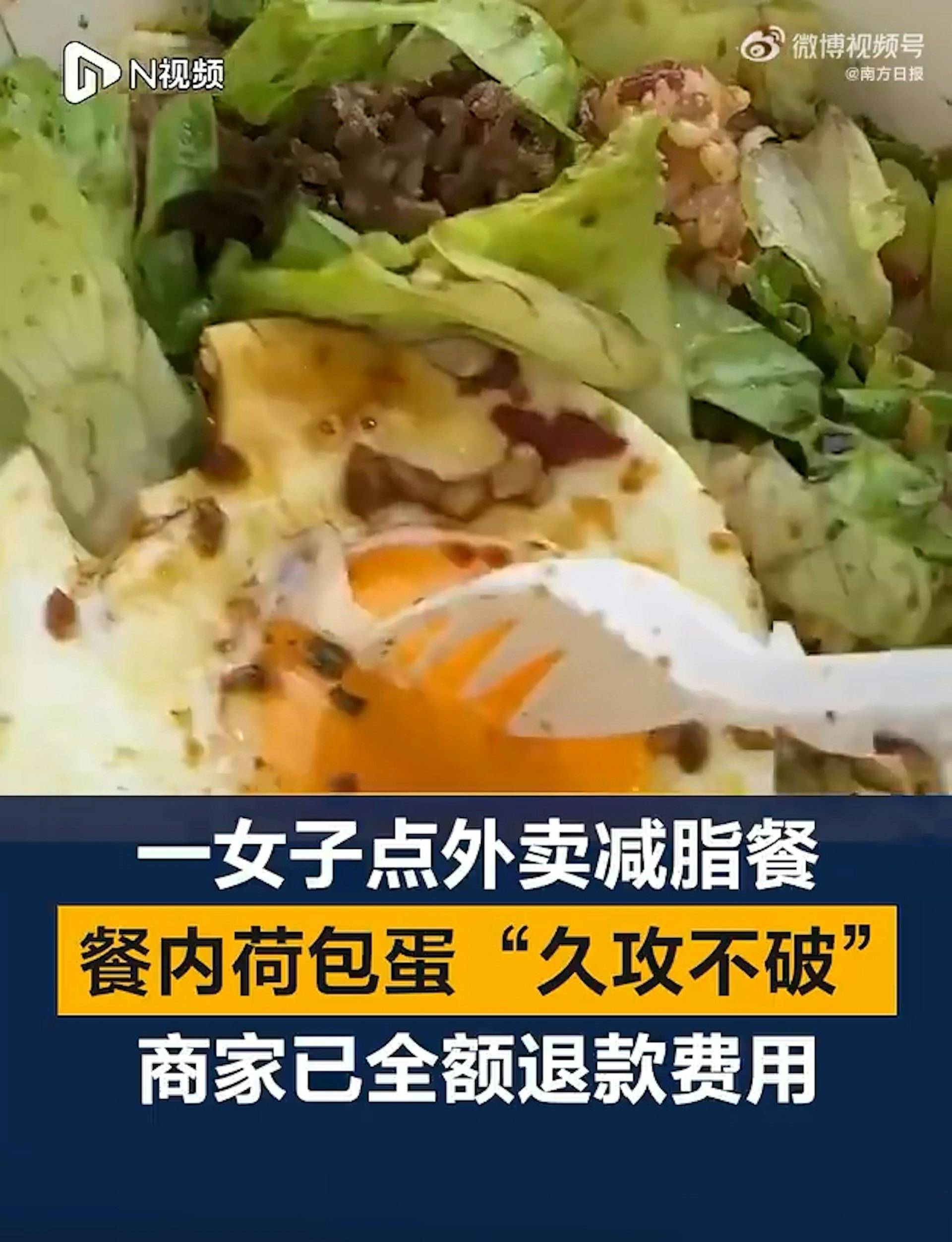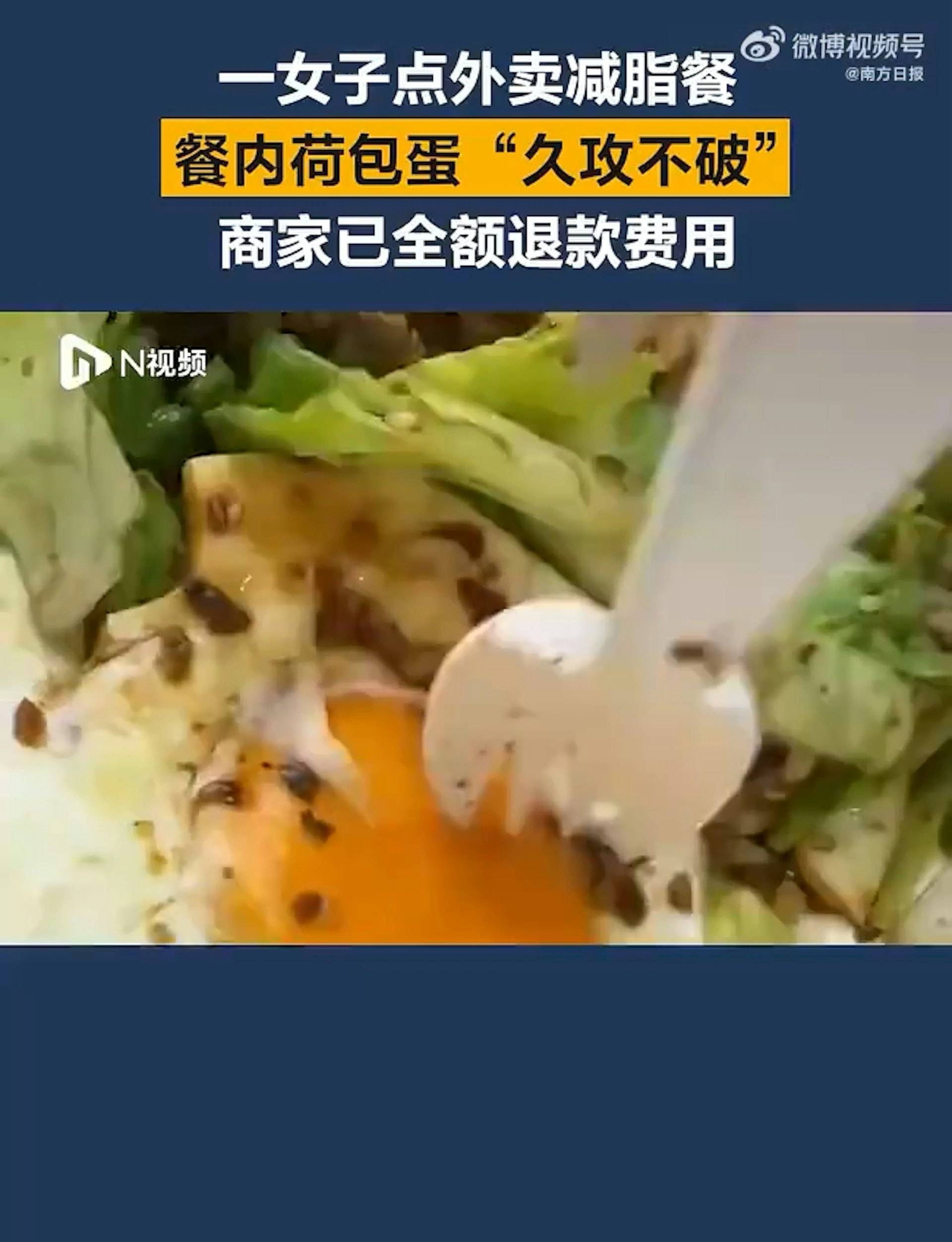 根據《南方日報》報導,這起事件發生在10月13日,何姓女子點了一份減脂餐外賣。當她準備享用餐點時,發現荷包蛋的蛋黃異常堅硬,無論如何用叉子戳刺都無法刺破。女子將這個奇特現象拍攝成影片,可以清楚看到她用叉子反覆戳刺蛋黃,但蛋黃表面完全沒有破損,質地看起來就像塑膠一樣堅硬。這種異常情況讓女子感到困惑和擔憂,決定向店家反映這個問題。