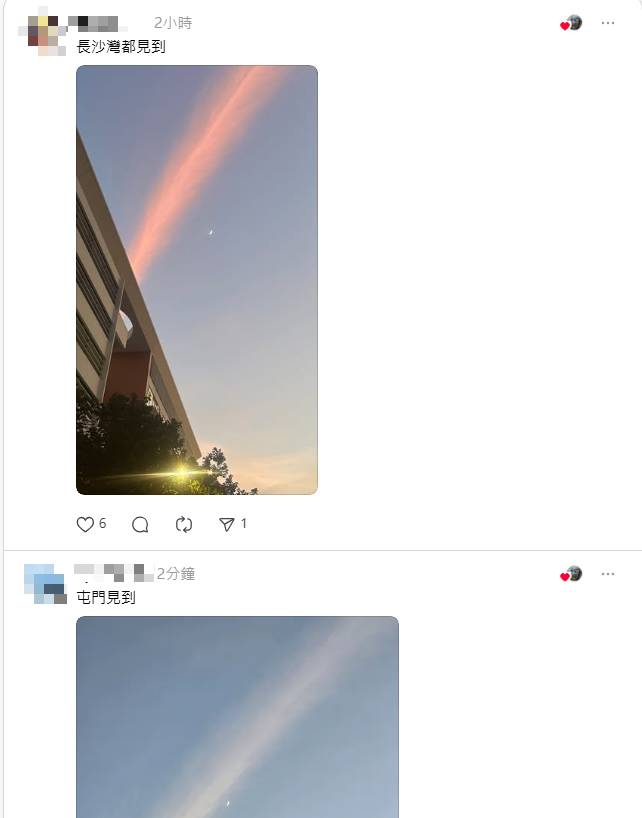 網民驚見天空異象紛紛拍攝分享