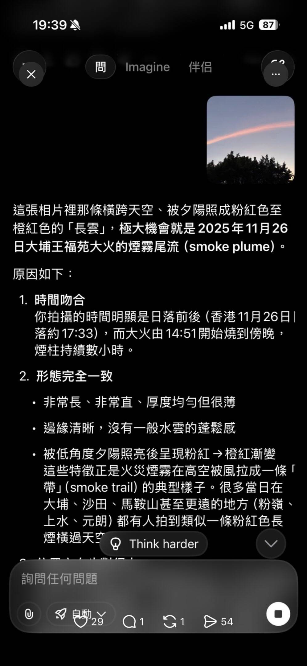 AI解釋火災煙霧形成粉色異象