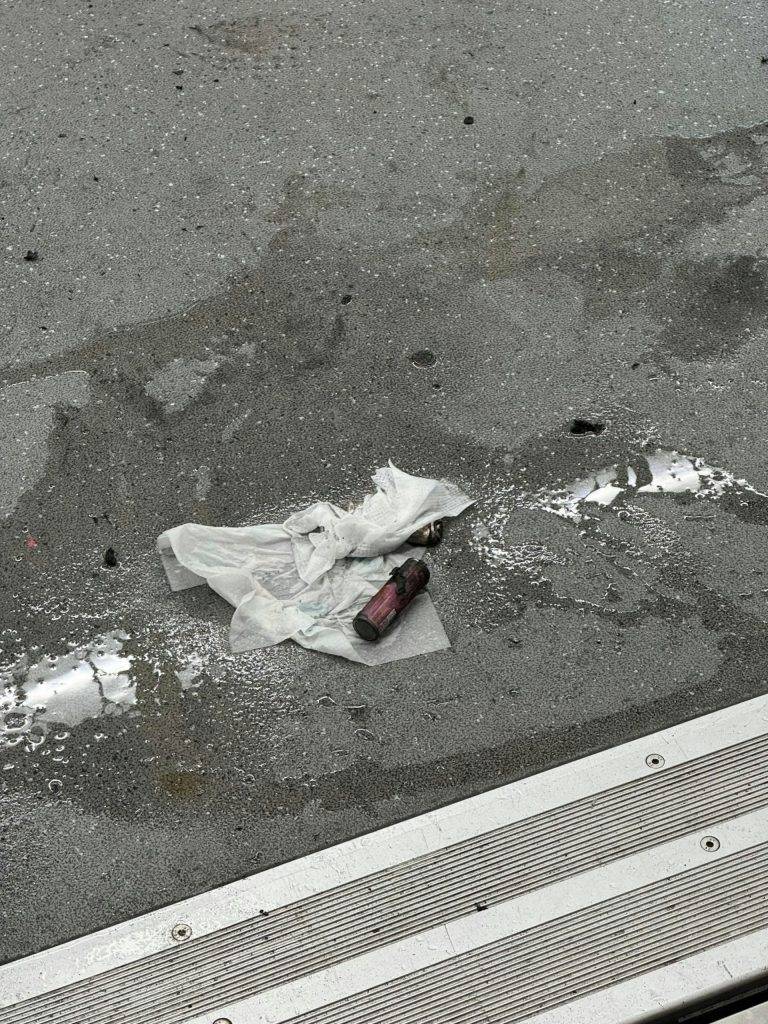 火警被撲滅後,起火的電池被棄置在車廂地板上,旁邊留有相信是用於滅火的濕紙巾和水漬。港鐵職員及消防員在現場進行調查,初步認為事件沒有可疑之處,已將案件列作「火警」及「有人意外受傷」處理。這次事件再次引起公眾對手提電子產品鋰電池安全的關注。