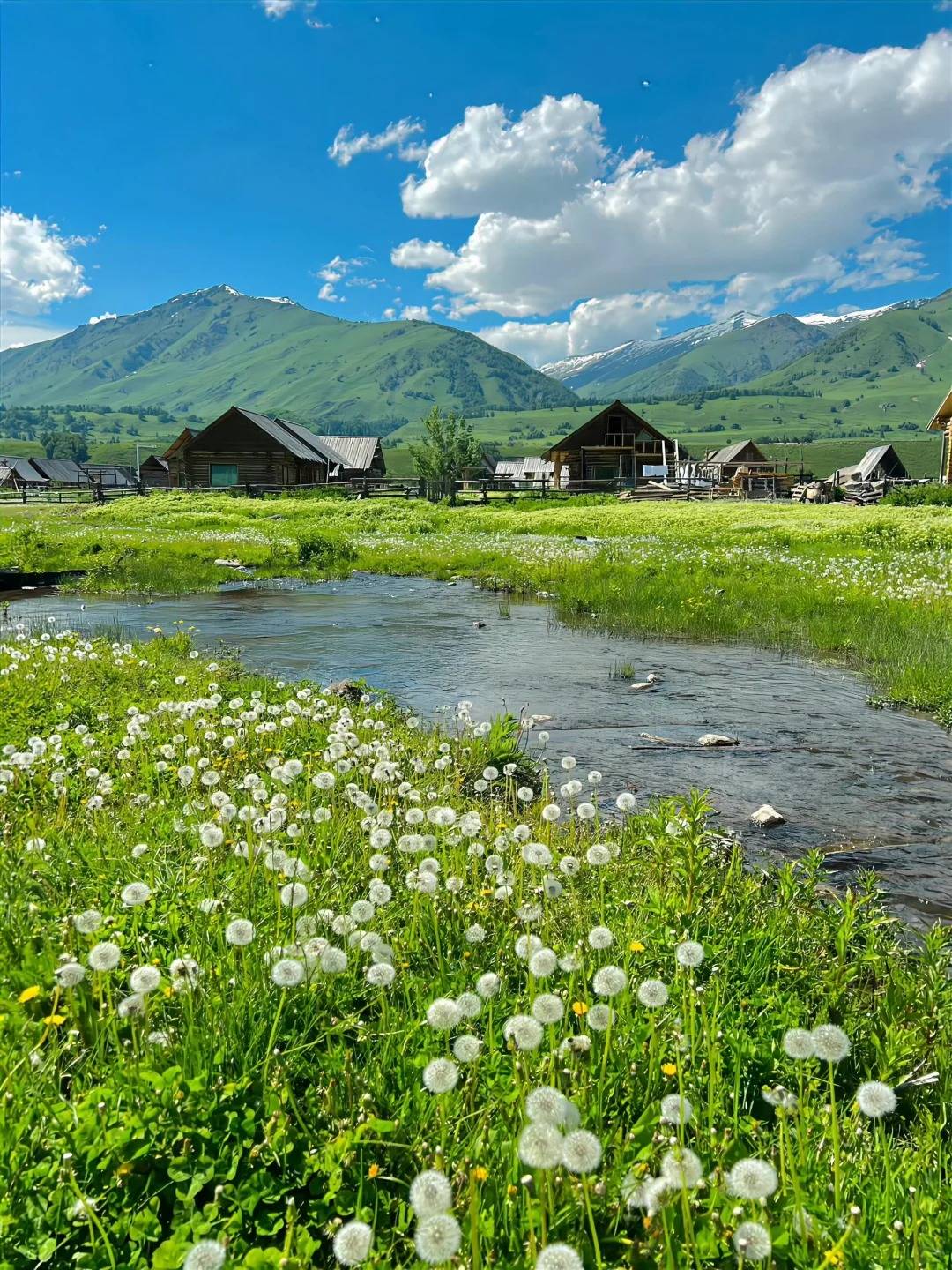 春天的禾木村展現優雅姿態,杏花如繁星般點綴天空,翱翔的雄鷹和暮歸的牧羊人構成動人畫面。夏天則把草原、藍天、白雲、牧場、雪山、河流、湖泊完美結合,滿山盛開的野花為大地鋪上彩色地毯。冬日裡的禾木村銀裝素裹,寧靜如靜止,穿著銀裝的白樺林在霧凇和冰雪下流動著輕柔的和弦,被最後一縷陽光親吻的山尖展現極寒下的溫暖。一望無際的樺林霧凇和時不時出現的雲海繚繞在腳下,宛若在雲海間乘雪破浪,童話般的村莊景象超出所有人的預想。