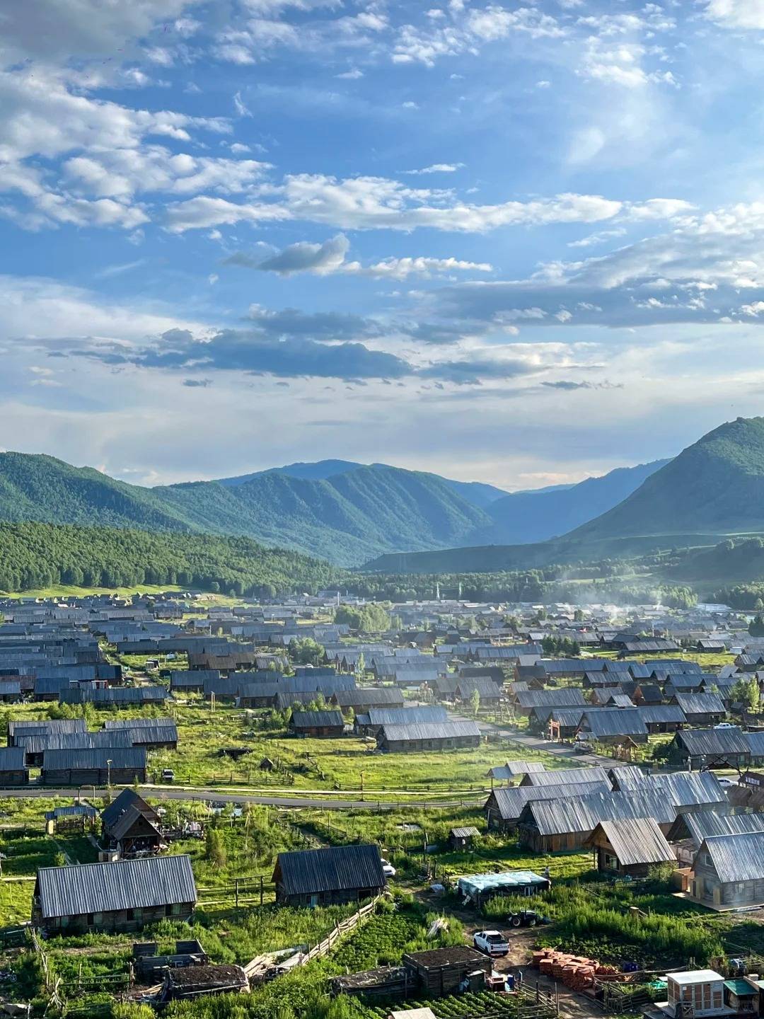 禾木村位於北疆阿勒泰地區布林津縣,坐落在喀納斯湖東側約30公里處,是一個由哈薩克人和圖瓦人共同聚居的小村莊。這裡所有的房屋都是用原木搭建而成,充滿了濃厚的原始味道,散亂地分佈在山間的谷地裡。當地少數民族同胞在院子裡勞作著,整個村落顯得古樸安靜,彷彿時間在這裡靜止了一般。額爾齊斯河緩緩流過村旁,河水呈現淺藍色,清澈見底,配上岸邊的白樺林和成片向日葵,中間還夾雜著當地人潔白的氈房,讓人仿若置身傳說中霍比特人的家園。