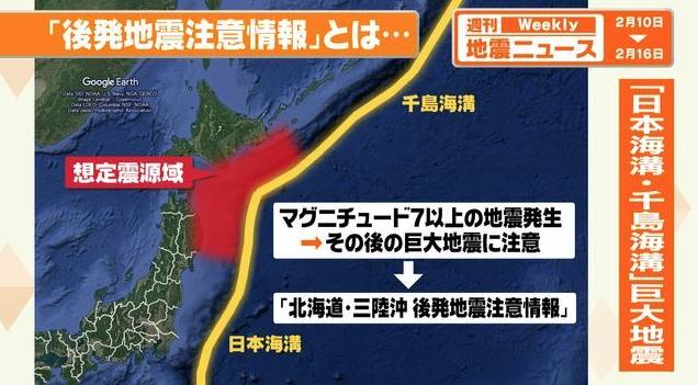 雖然今日清晨北海道至福島縣的海嘯預警全部解除,但日本政府基於311東日本大地震的經驗教訓,根據最新科學資訊對未來可能發生的特大地震進行預測評估。官方數據顯示,未來一星期內發生8級以上強震的機率已由0.01%急升至1%,增幅達100倍之多。據日本內閣府發布的資訊,政府正密切監察日本海溝和千島海溝沿線地區可能遭受的破壞程度,並呼籲民眾保持高度警覺。