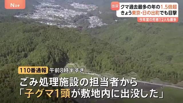 東京市中心以西的日之出町山區垃圾處理場附近,周二早上有民眾發現一隻熊四處走動。接獲報告後,警方和專業狩獵隊立即趕到現場進行搜索和確認工作。經過仔細調查,當局確認該處確實有熊出現過的痕跡,並相信是一隻幼熊,但搜索行動至今未能找到熊隻的確實位置。這次發現令東京近郊地區的居民感到擔憂,因為熊隻出現在人口稠密的垃圾處理場附近,存在一定的安全風險。
