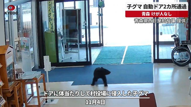 與此同時,青森縣亦發生另一宗熊出沒事件。一隻身長約50厘米的小熊成功闖入當地市政辦公室內,在室內四處亂跑並多次撞到玻璃門。當時在辦公室工作的職員聽到異常聲音後走出來查看情況,但發現時小熊已經逃走。這次事件顯示熊隻對人類建築物的入侵能力,特別是自動門系統可能成為熊隻進入的便利通道。市政辦公室的職員對於熊隻能夠如此輕易進入感到震驚。
