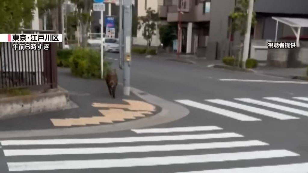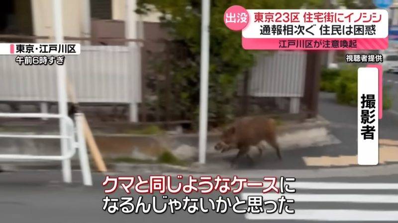 根據日媒報導,昨日上午6時左右,江戶川區東葛西地區開始有民眾報案稱「有野豬在路上奔跑」。警視廳指出,從6時到6時半之間,共接獲9件通報,顯示這頭野豬沿著「葛西橋通」一路往南奔跑。最後一次出現是在6時23分左右的西葛西8丁目一帶,之後便消失無蹤。拍攝畫面的居民回憶,野豬流著口水、神情慌張,似乎在尋找食物,「以為牠會衝過來攻擊我」。事發時正值上學通勤時段,住宅區內出現野豬更加深了民眾的恐慌情緒。