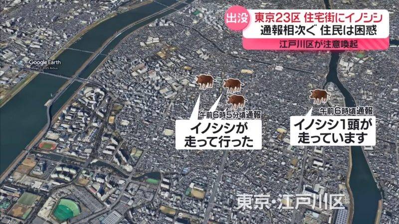 江戶川區政府首次接獲野豬通報 緊急通知學校戒備
