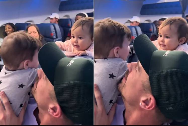 期間Taylor回頭觀察兒子動作時,Kingston似乎察覺爸爸的「注視」,隨即伸手拍打其臉龐,彷彿阻止他繼續「八卦」。這個舉動令Taylor哭笑不得,機艙內部分乘客亦留意到兩名嬰兒的有趣互動,不少人露出會心微笑。整個過程中,兩名嬰兒都表現得十分自然,沒有任何陌生感或恐懼,反而像是認識已久的好朋友一般。
