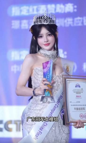 第28屆國際模特大賽中國總決賽廣東賽區日前舉行,15號參賽者身形豐腴、個子不高且年齡偏大,卻擊敗眾多對手奪得「女模組廣東冠軍」。網上流傳的影片顯示,這名參賽者分別以旗袍、晚裝、賽車女郎等造型登場,但步履豪邁的catwalk表現、身形比例及儀態都未達理想水準,神情更顯繃緊。她的舞台魅力與氣質、整體表現連貫性等皆欠奉,成功封冠令網民大感意外。