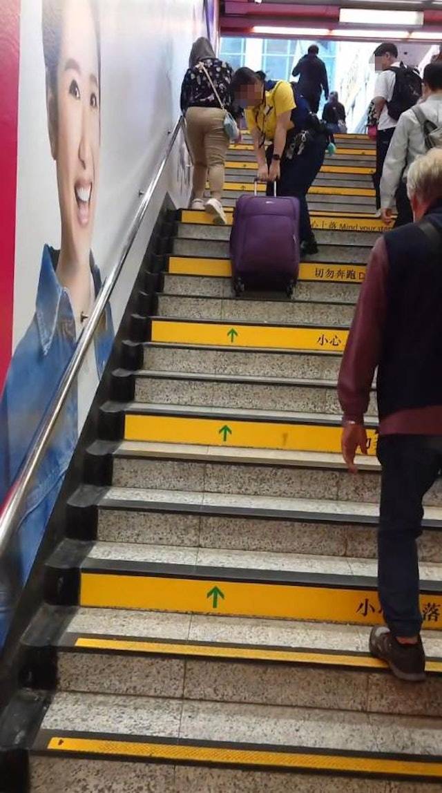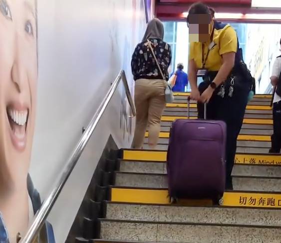港鐵職員旺角站吃力拉行李箱 外籍女子冷漠旁觀