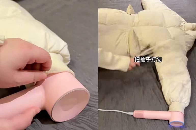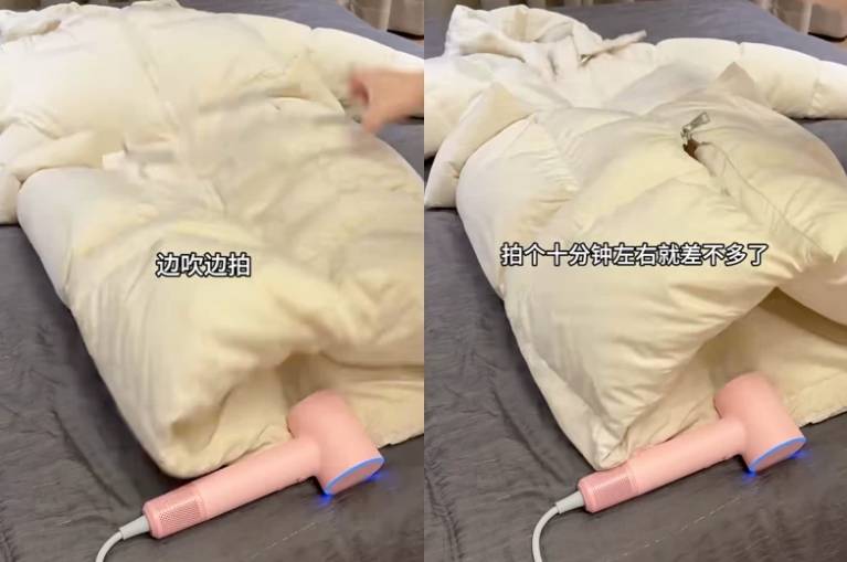 有熱心網民分享了一個簡單有效的復原方法,只需要使用家中常見的吹風機就能解決問題。首先將羽絨外套平放在乾燥的表面上,接著將吹風機調至冷風檔位,從衣服下擺開始均勻吹向羽絨外套。冷風能夠幫助蒸發殘留的水分,同時配合手部輕拍羽絨外套表面,有助於打散結塊的羽絨,使其重新恢復蓬鬆狀態。在主體部分開始變澎後,再轉往袖子部分進行同樣的處理,整個過程簡單易懂,效果立竿見影。