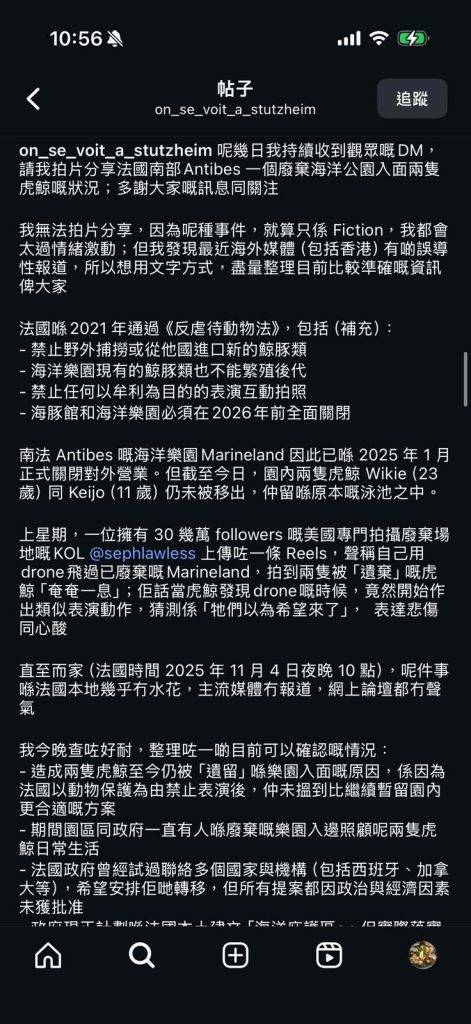 上星期,一位擁有數十萬追蹤者的美國廢棄場地拍攝專家@sephlawless在社交媒體上傳了一條影片。他聲稱用無人機飛越已關閉的Marineland海洋公園,拍攝到兩隻被「遺棄」的虎鯨在污濁水池中「奄奄一息」的慘況。影片中最令人心碎的一幕,是當虎鯨發現無人機時,竟然開始做出類似表演的動作,KOL推測「牠們以為希望來了」,整段影片充滿悲傷和心酸的氛圍,迅速在全球社交媒體上引起巨大迴響。