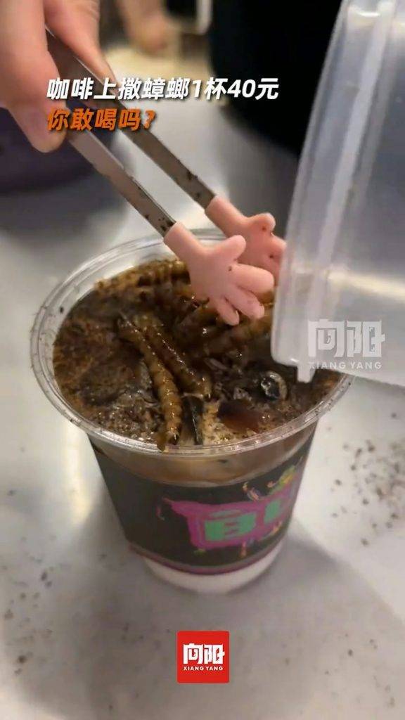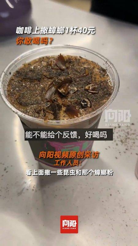 蟑螂咖啡 昆蟲飲品 (圖片來源:向陽視頻@微博)