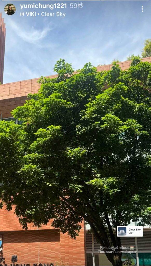 鍾柔美 港大 今年9月1日,鍾柔美Yumi在Instagram發限時動態,發文First day of school  Time start a new chapter.(圖片來源:Instagram@yumichung1221)