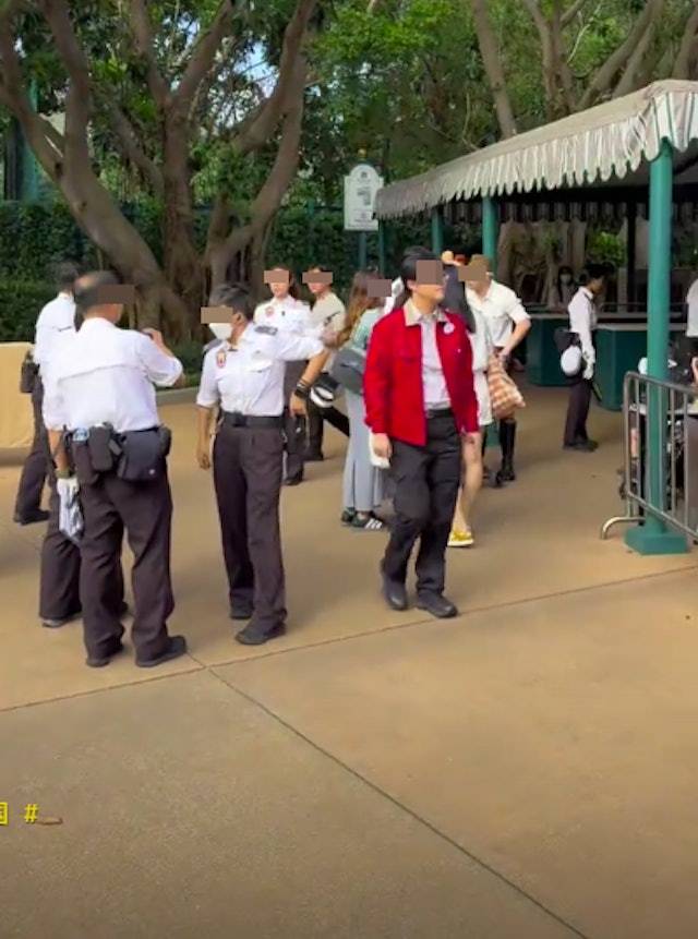 這對中俄情侶隨即向迪士尼樂園投訴表達不滿。畫面一轉,穿上日軍裝扮的男子已被至少十多名迪士尼保安包圍處理。該對中俄情侶對迪士尼保安迅速處理感到滿意,在影片中讚好說「我的心情變好了。3分鐘圍上來十多個保安,給港迪點讚」,更形容「這裏到底有多少保安會過來,OH GOD,感覺直接抗日了」。根據香港迪士尼樂園規則,16歲或以上賓客不可以穿著裝扮服飾,除非在迪士尼明確允許或鼓勵的特別節目或活動期間。樂園有權拒絕「認為衣著不恰當」或「有可能影響其他賓客遊樂體驗的裝束的賓客」進入樂園,或要求他們除去不恰當裝束。