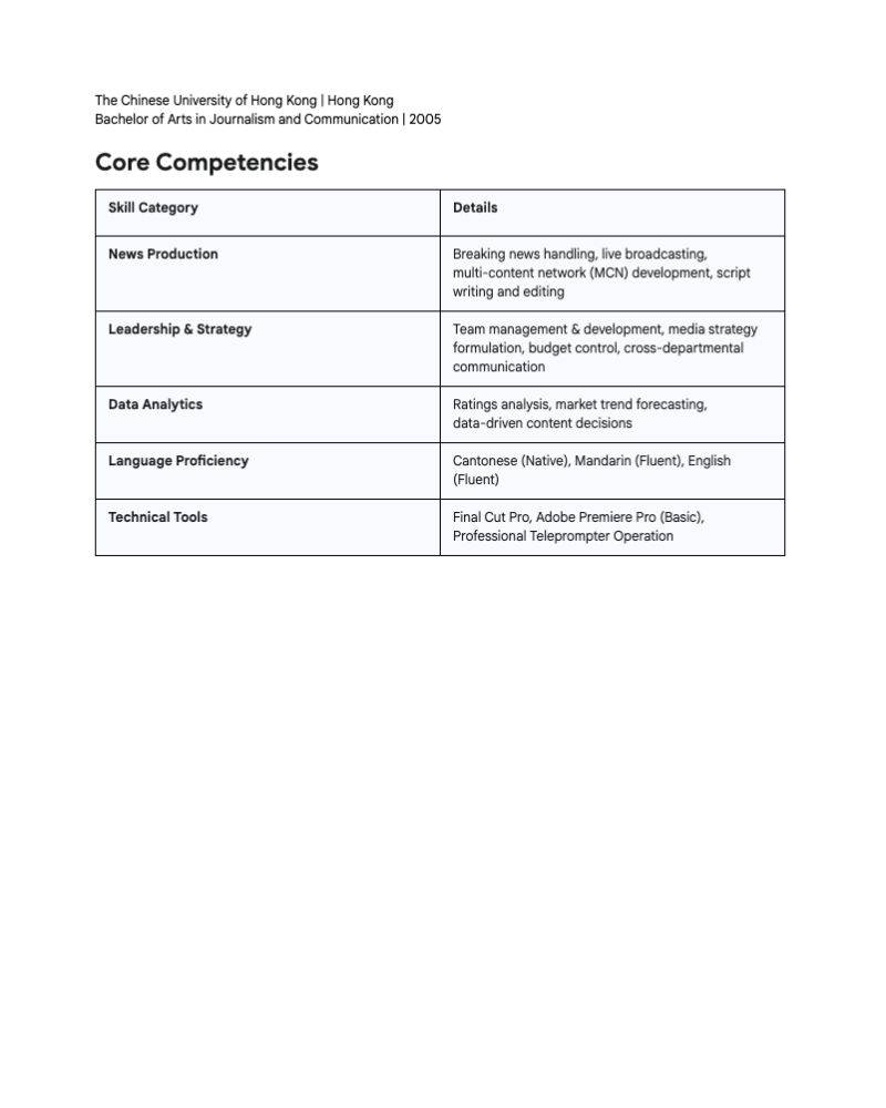 第三個指令負責最終檢查,確保CV沒有文法錯誤和語氣問題。指令內容為「Please proofread this CV section for professional tone, clarity, and any grammatical errors」,然後貼上整份CV內容。專家指出,有時候自己寫英文會太過口語化,或者出現隱藏的文法錯誤,透過AI檢查可以避免這些低級錯誤。除了ChatGPT外,求職者亦可以使用Google Gemini、Perplexity、Poe等其他AI工具,選擇相當多元化。