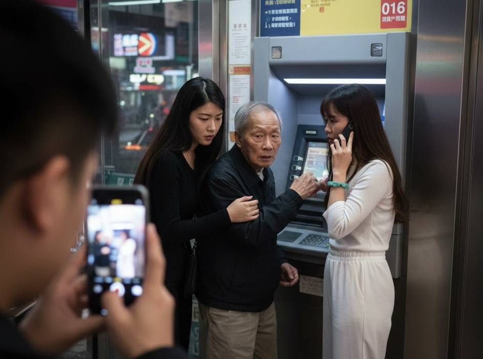 黑白二女緊貼阿伯ATM撳錢畫面曝光