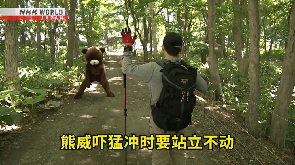 這支在Facebook專頁發布的教學影片由兩名工作人員示範,其中一人穿著酷似LINE角色熊大的棕色布偶裝,另一人則穿著登山服飾。影片詳細講解遇到野熊時的正確應對方式,包括不要奔跑、使用防熊噴霧、保持距離等重要求生技巧。然而網民的注意力卻完全被那隻「假熊」吸引,紛紛留言大讚可愛程度破表。
