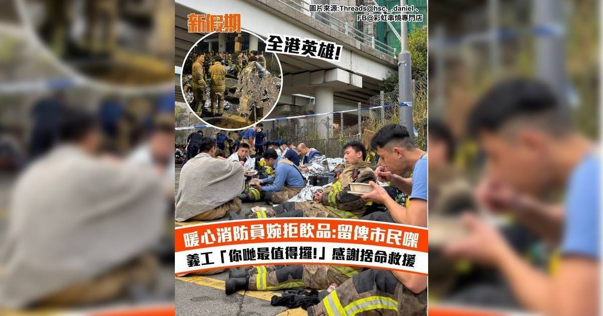 大埔宏福苑五級火|暖心消防員婉拒飲品 義工「你哋最值得攞!」