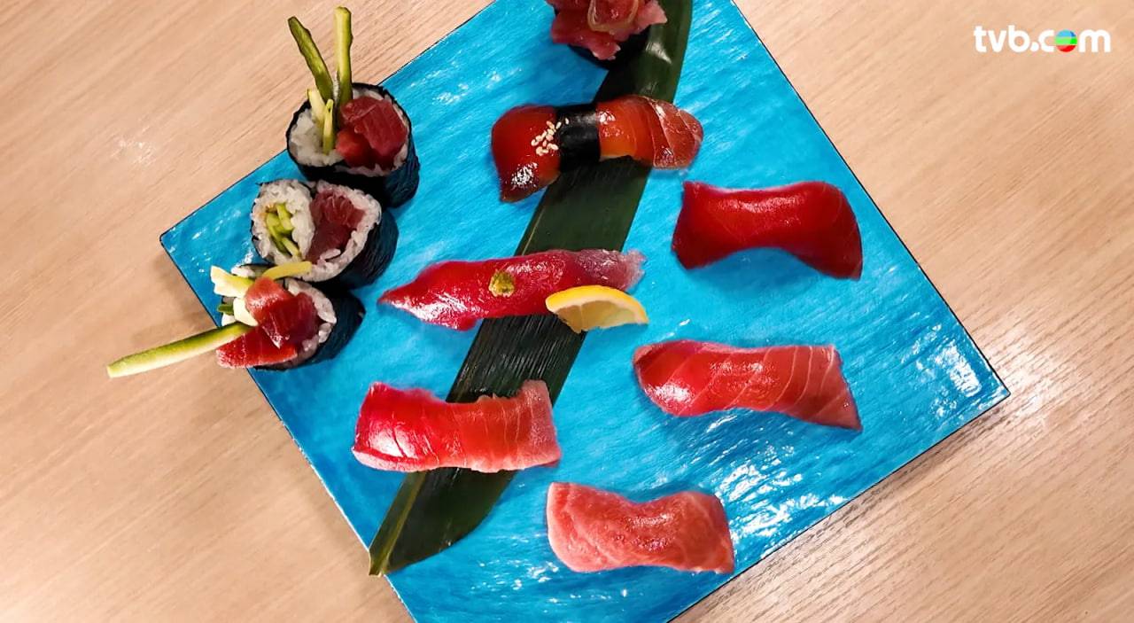 淺草壽司店「佃瀧三郎すし 」的食材由豐洲魚類批發商直營,不用再擔心「起唔到身去排隊」!午市的9件壽司套餐價格為1,300日圓(折合港幣約70元)。店內的海鮮丼有12種海鮮,吞拿魚、大拖羅、吞拿魚蓉。陳方藤分享海鮮丼的方法,將魚生沾取醬油與飯一起享用:「如果豉油直接倒入去,底部嘅飯浸咗豉油後會好鹹,成個味道會唔平衡。」